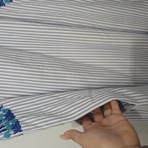 Elegant blue and white dress featuring intricate embroidery. Perfect for any occasion.