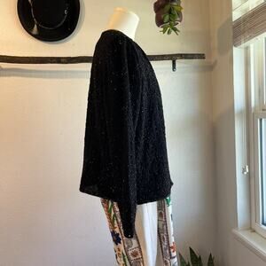 JMB 70s Vintage Black Swiggly Swirl Beaded Evening Glam Jacket Size Small