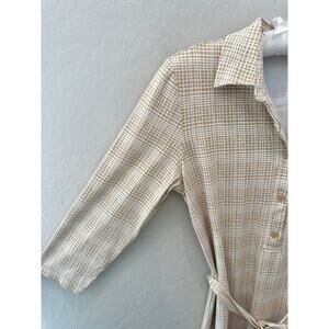 J.MCLAUGHLIN | Beige Grid Print Catalina Cloth Shirt Dress Belted | Size Small