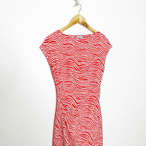J.MCLAUGHLIN Catalina Cloth boatneck ruched DRESS red wavy striped womens XS