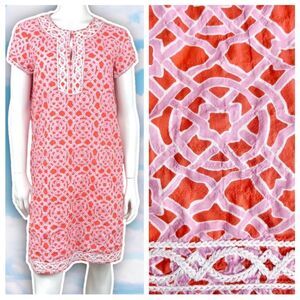 J. MCLAUGHLIN Geometric Embroidered Mini Tunic Dress Preppy Beach Coastal XS