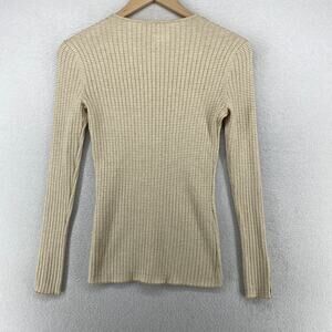 J.MCLAUGHLIN Sweater Womens XS Annette Ribbed Striped Button Cuff Stretch Beige