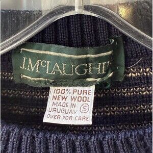 The J.McLaughlin Women's New Wool Sweater in Navy Blue, size small, features a classic crew neck and long sleeves, making it a versatile and stylish addition to any woman's wardrobe.
