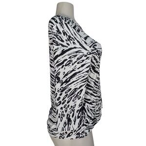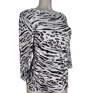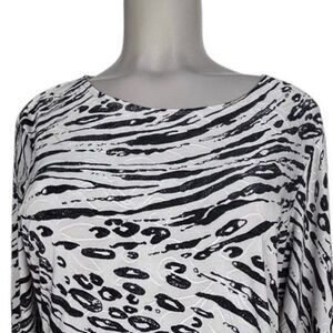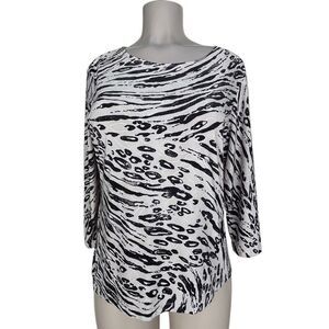 JM Collection Blouse Women's Petite Large Black & White Embroidered Textured Animal Print