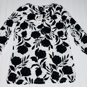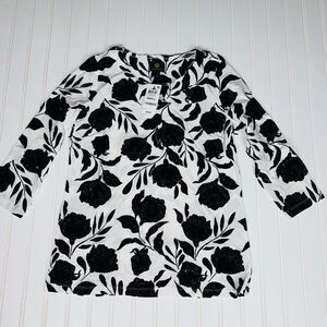 JM Collection Flocked Velvet Jacquard Keyhole 3/4 Sleeve Top Size S NWT