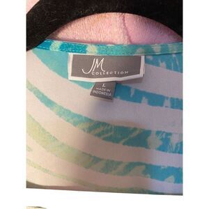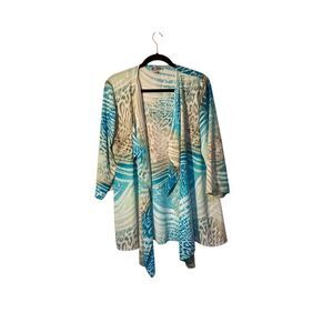 JM collection women’s open front blue and tan Cardigan beachy /4 sleeves