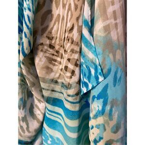 JM Collection Woman’s Open Front Blue & Tan Cardigan Size Large