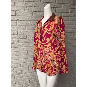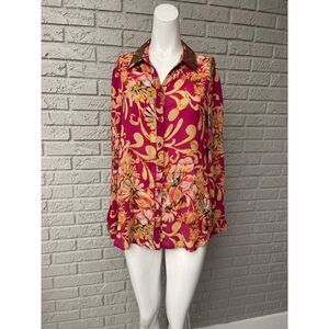 JM Collection Women Multicolored Long Sleeve Gold Sequin Collar Shirt Size 10
