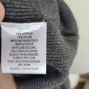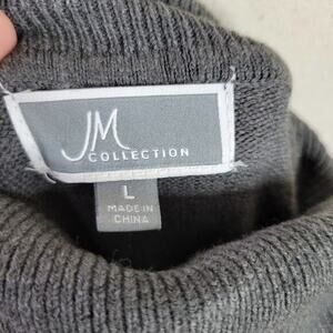 JM Collection Gray Turtleneck Sweater. Elevate your cool-weather wardrobe with this sophisticated turtleneck from JM Collection accented by black mother-of-pearl buttons on sleeves. Size Large. Excellent Used Condition. Note: Stock photo shows white sleeve buttons. This top has dark gray/black buttons. 88% Acrylic, 12% Nylon.