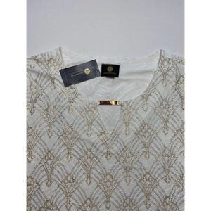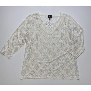 JM Collection Blouse Top Large White Women's Glitter Sparkle NEW