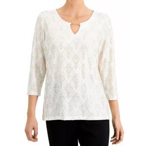 JM Collection Blouse Top Medium White Women's Glitter Sparkle NEW
