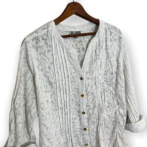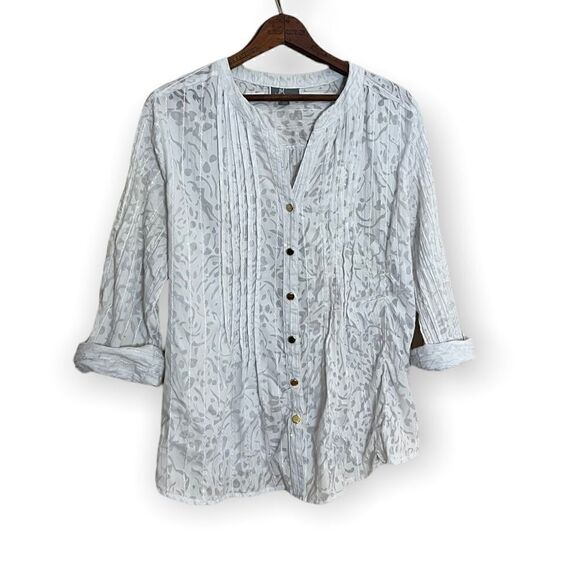 JM Collection button down shirt. Cotton blend, subtlety placed sequins, adjustable sleeve length. Please don’t hesitate to ask me for any details!