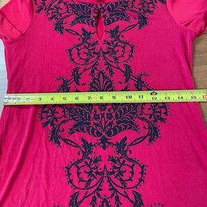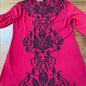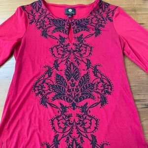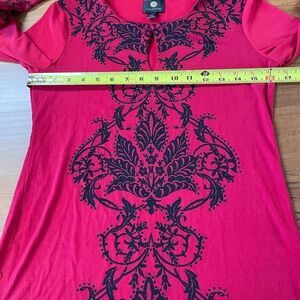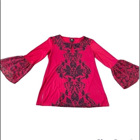 Petite petite. See pictures for measurements. New. Beautiful front design. Keyhole at the neck. 3/5 sleeves with loose/sheer cuffs.