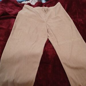 Great looking tan slacks, soft suede feel. No pockets. Slimming look. EC. Smoke-free, pet free home.