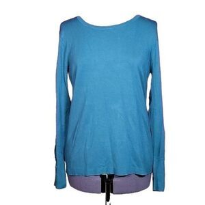 JMâCollectionâTeal Button-CuffâCrewneckâSweaterâSzâSP