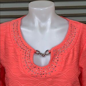 Beautiful top sheer trim on bottom studs around neck with peephole