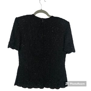 JMD Women’s Top Vintage Sequins Beads Short Sleeve Silk Shoulder Pads
