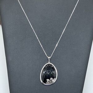 JMH Sterling Silver .925 Necklace Faceted Black Onyx Pendant Accented with Shamrocks