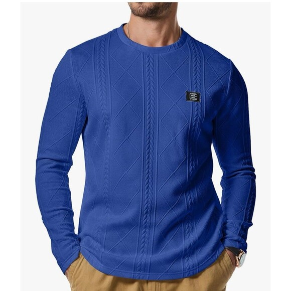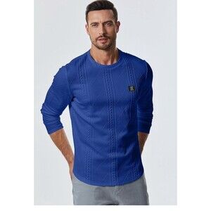 JMIERR Men Casual Long Sleeve Shirt Crew Neck Collar Pullover Sweatshirt XL blue