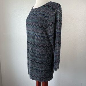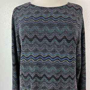 Love the super fun and colorful metallic sparkle on this top by JM. It features a stretch fit and measures 20 inches armpit to armpit and 31 inches in length from shoulder to hem.