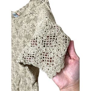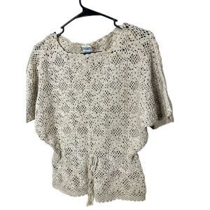 J.M. Pink Tan Crochet Toe Waist Top Blouse Size S