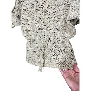 J.M. Pink Tan Crochet Tie Waist Top Blouse Size S. Good condition. Flower print crochet. Ties at the waist for a flattering look. Sheer
