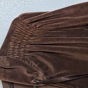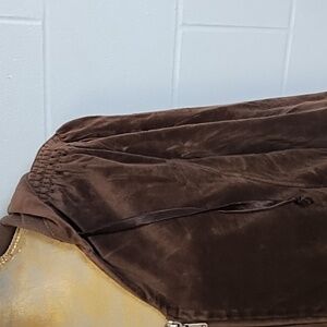 JMS Brown Velour Hooded Jacket Top 1X 16W Detailed Shoulder Pockets Zip Front
