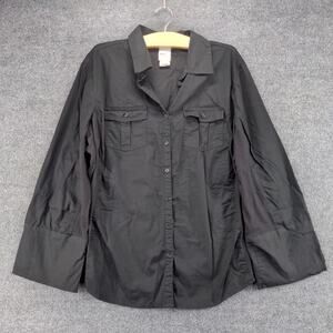 JMS Just My Size Button Up Womens Shirt Size 3X Black Long Sleeve