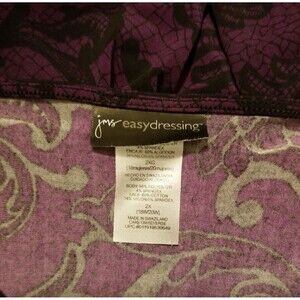 The JMS Women's Top Shirt in size 2X is a stylish and versatile piece perfect for various occasions. The purple and black paisley pattern adds a touch of bohemian flair, while the lace insert at the neckline brings a classic and elegant touch. Made from a comfortable blend of polyester and spandex, this top features a drape neckline and 3/4 sleeves, making it easy to care for with machine washable fabric. Perfect for traveling, parties, casual outings, or business meetings, this plus-size shirt is a must-have for any woman looking for a chic and comfortable wardrobe staple. Part of the JMS Easy Dressing Collection. The approximate pit to pit is 24" and the approximate length is 30"