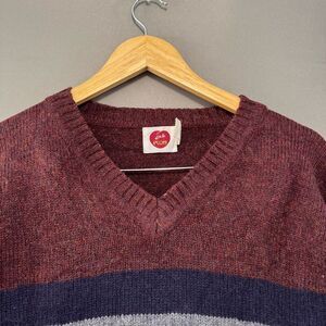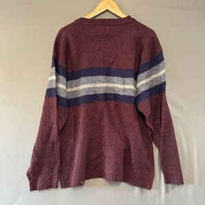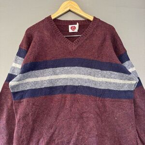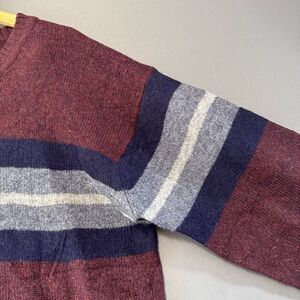 J’Ma Plum Men’s 100% Wool V-Neck Sweater Size Large Striped Graphic