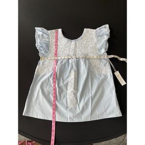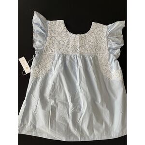 Fresh + feminine! Light blue with white floral embroidery, flutter sleeves & relaxed fit. Effortless boho chic for brunch, vacation, or everyday wear. New, size Medium. Lightweight and breathable for all-day comfort.