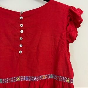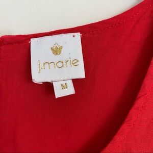 J.Marie Red Ruffle Sleeve Tank Embroidered Sleeveless Button Back Medium