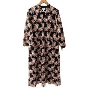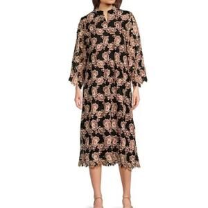 J.Marie Talia Floral Lace Mandarin Collar Long Bell Sleeve Midi Dress Size Small