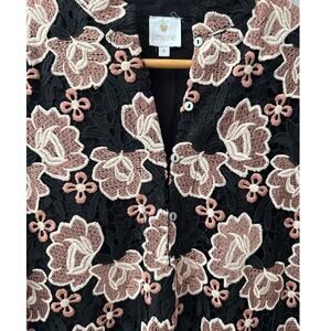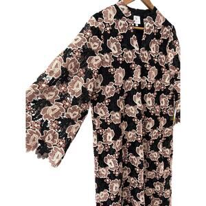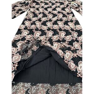 J.Marie Talia Floral Lace Mandarin Collar Long Bell Sleeve Shift Midi Dress Size Small