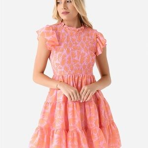Step out in style with this vibrant pink mini dress, featuring playful ruffle sleeves. Perfect for any sunny occasion.