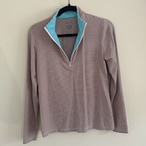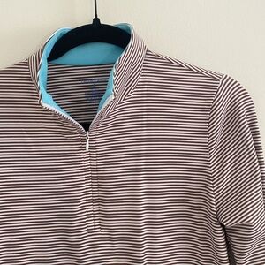 J.McLaughlin Ace Knit Stripe Print Quarter Zip Mock Neck Long Sleeve Pullover SM
