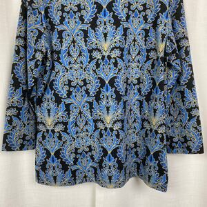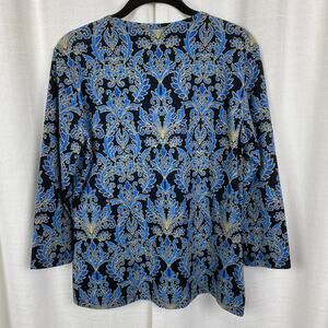 J.McLaughlin Black&Blue Leaf Print Catalina Cloth 3/4 Sleeve Blouse Sz.L