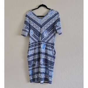 J.McLaughlin Blue Print Catalina Cloth Harbor Dress Size L Nautical V-neck