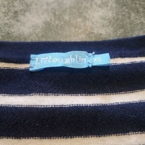 J. McLaughlin Blue White Stripe Side Front Tie Shirt sz XS in good used condition with minimal wear.