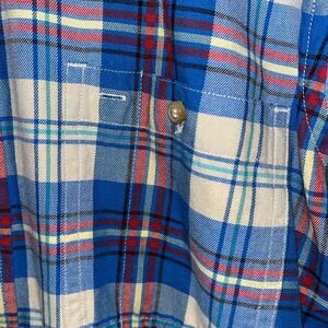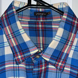 J.McLaughlin Blue Creme Red Tartan Plaid LS Flannel Cotton Business Work Shirt L