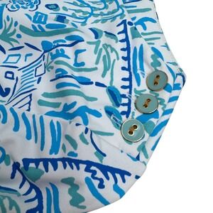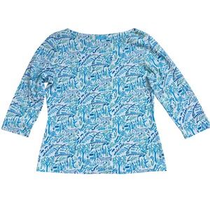 J.McLaughlin Boatneck Button 3/4 Sleeve Top Blues Village Print Large