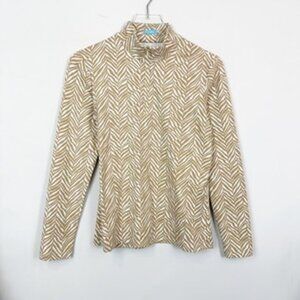JMcLaughlin Brown Zebra Print Bedford Catalina Quarter Zip Pullover Top M