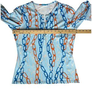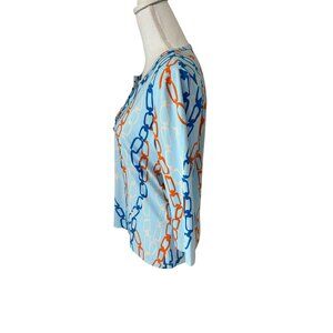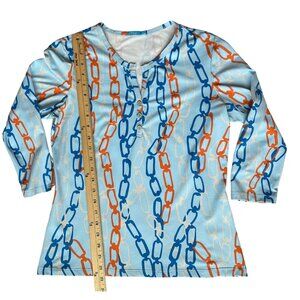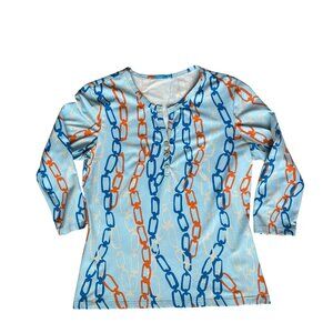 J.McLaughlin Catalina Cloth Chain Print 3/4 Sleeve Henley Top Size Medium