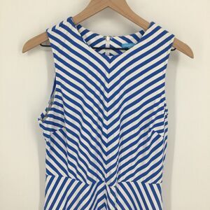 J.McLaughlin Courtney Chevron Stripe Dress Women Large Blue White Catalina Cloth Summer Spring Sleeveless Classic Preppy Nautical Stretch