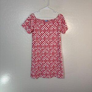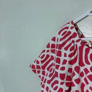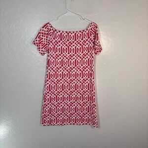 J.McLaughlin Dress Womens Small Red White Geometric Shift Stretch Short Sleeve