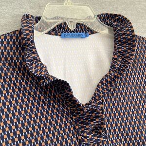 J. McLaughlin Durham Ruffle Top Womens Small Catalina Geometric Blue Career Office