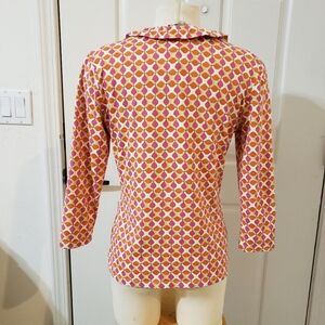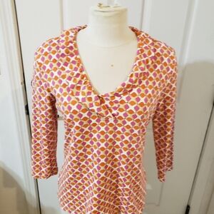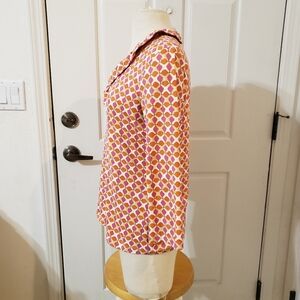 J.McLaughlin Durham Ruffle Top in Essex Geo Red Pink All Over Pattern Size M