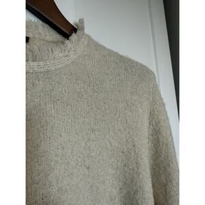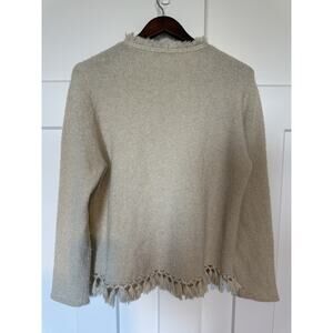 J.McLaughlin Fringe Hem Sweater XL Cream Sparkle Alpaca Wool Blend