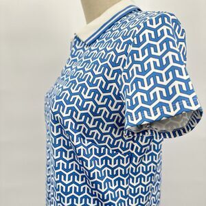 J.McLaughlin Montclair Polo Dress S Catalina Cloth Blue Geo Shift Zip Collar
