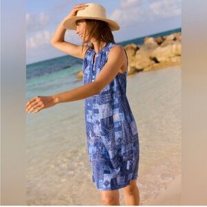 J.McLaughlin Nylee Linen Sleeveless Dress Blue Diamond Patch S NWT